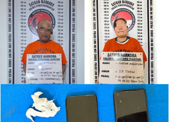 Upaya Polres Pematangsiantar memberantas peredaran narkoba kembali membuahkan hasil. Sepasang suami istri berinisial S (46) dan AA (33) warga Jalan Pdt J. Wismar Saragih, Kelurahan Pondok Sayur, Kecamatan Siantar Martoba, ditangkap Satresnarkoba Polres Pematangsiantar karena memiliki dua paket sabu dengan total berat bruto 2,55 gram.