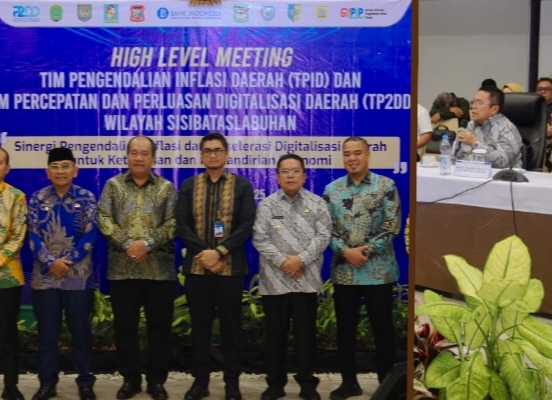 Wali Kota Pematangsiantar Wesly Silalahi SH MKn memaparkan rencana strategis pengendalian inflasi di High Level Meeting (HLM) Tim Pengendalian Inflasi (TPID) dan Tim Percepatan dan Perluasan Digitalisasi Daerah (TP2DD) Wilayah SISI BATAS LABUHAN, Kamis (13/11/2025).
