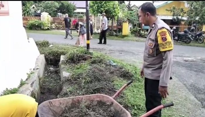 Bhabinkamtibmas Polsek Siantar Barat Turun ke Lapangan, Gotong Royong Bareng Warga