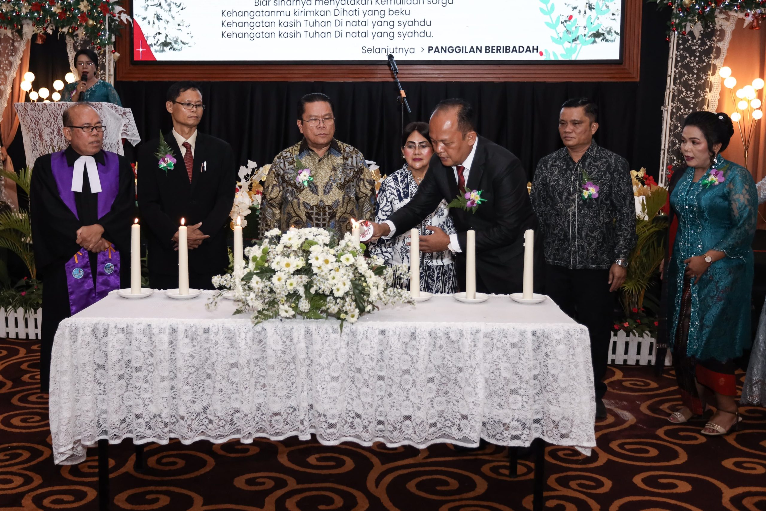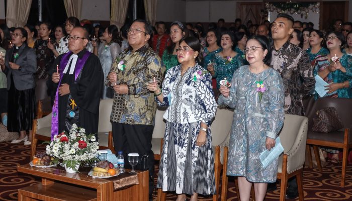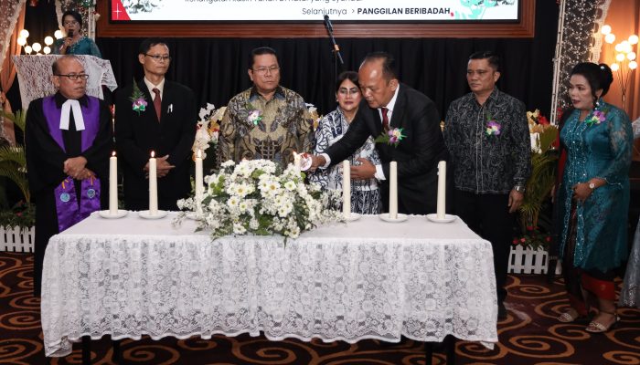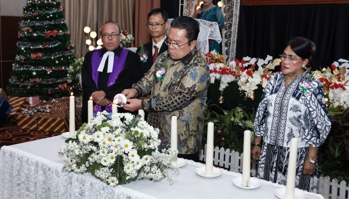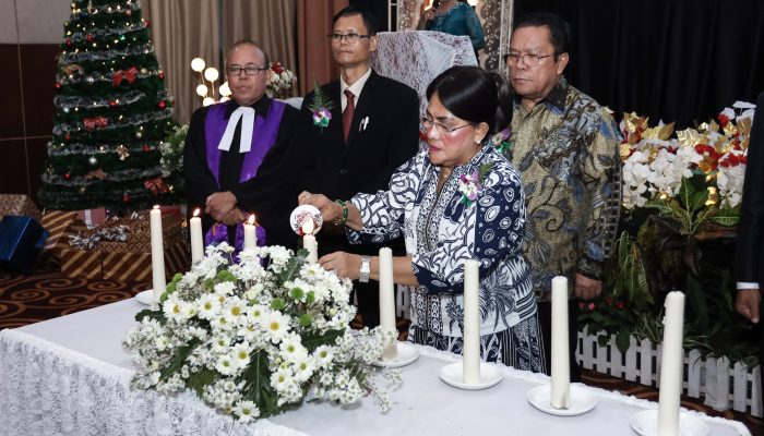 Perayaan Natal diawali ibadah dengan pengkhotbah Pdt Dr Humala Lumbantobing MTh (Bishop GKPI) dan penyalaan lilin oleh Wesly didampingi Ny Liswati bersama Dewan Pengawas Perumda Air Minum Tirta Uli, pengkhotbah, dan lainnya.