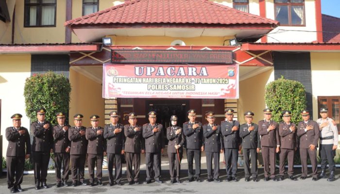 Polres Samosir menggelar Upacara Peringatan Hari Bela Negara ke-77 Tahun 2025 di Lapangan Mako Polres Samosir, Jumat (19/12/2025) pagi. Kegiatan yang dimulai pukul 07.30 WIB tersebut berlangsung khidmat, tertib, serta dalam suasana aman dan kondusif.