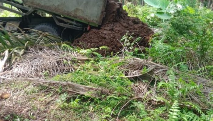 Berdasarkan pantauan di lapangan, terlihat kendaraan angkut masuk ke area perkebunan dan menurunkan limbah padat hasil pengolahan Pabrik Kelapa Sawit (PKS) ke lahan sawit yang masih dalam kondisi produksi. Limbah padat tersebut tampak ditumpuk begitu saja di sekitar tanaman tanpa adanya sistem pengelolaan yang jelas.