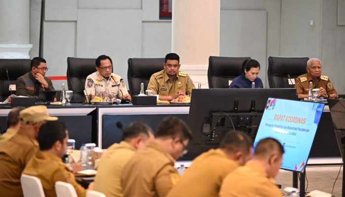 Pemerintah pusat dan Pemerintah Provinsi Sumatera Utara menyelenggarakan Rapat Koordinasi Percepatan Rehabilitasi dan Rekonstruksi Pascabencana banjir dan longsor sebagai forum strategis untuk menyelaraskan kebijakan, pendanaan, dan pelaksanaan pemulihan pascabencana.