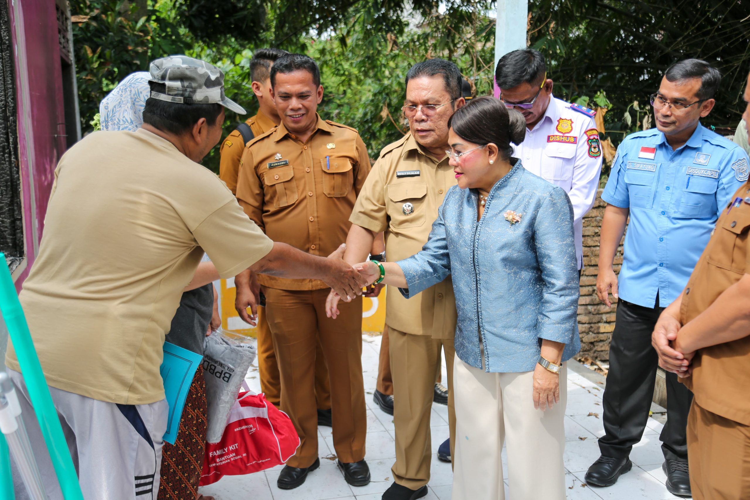 Wali Kota Pematangsiantar Wesly Silalahi SH MKn didampingi Ketua TP PKK Kota Pematangsiantar Ny Liswati Wesly Silalahi menyerahkan bantuan kepada keluarga Sulfan Solihin (63), korban kebakaran rumah di Jalan Kasuari Kelurahan Sipinggol-pinggol Kecamatan Siantar Barat, Selasa (20/01/2026). Rumah pensiunan TNI itu terbakar Kamis (15/01/2026).