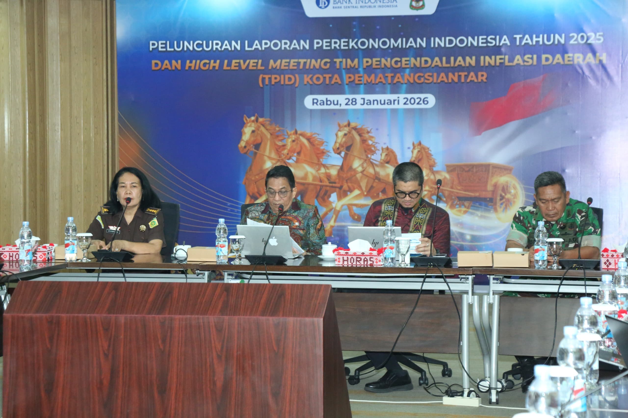 Wali Kota Pematangsiantar Wesly Silalahi SH MKn diwakili Asisten Perekonomian dan Pembangunan Zainal Siahaan SE MM menyaksikan Peluncuran Laporan Perekonomian Indonesia (LPI) 2025 oleh Bank Indonesia (BI). Wesly yang diwakili Zainal menyaksikan peluncuran tersebut dari Lantai 4 Kantor Perwakilan Bank Indonesia (KPw BI) Pematangsiantar, Jalan H Adam Malik Kota Pematangsiantar, Rabu (28/01/2026).